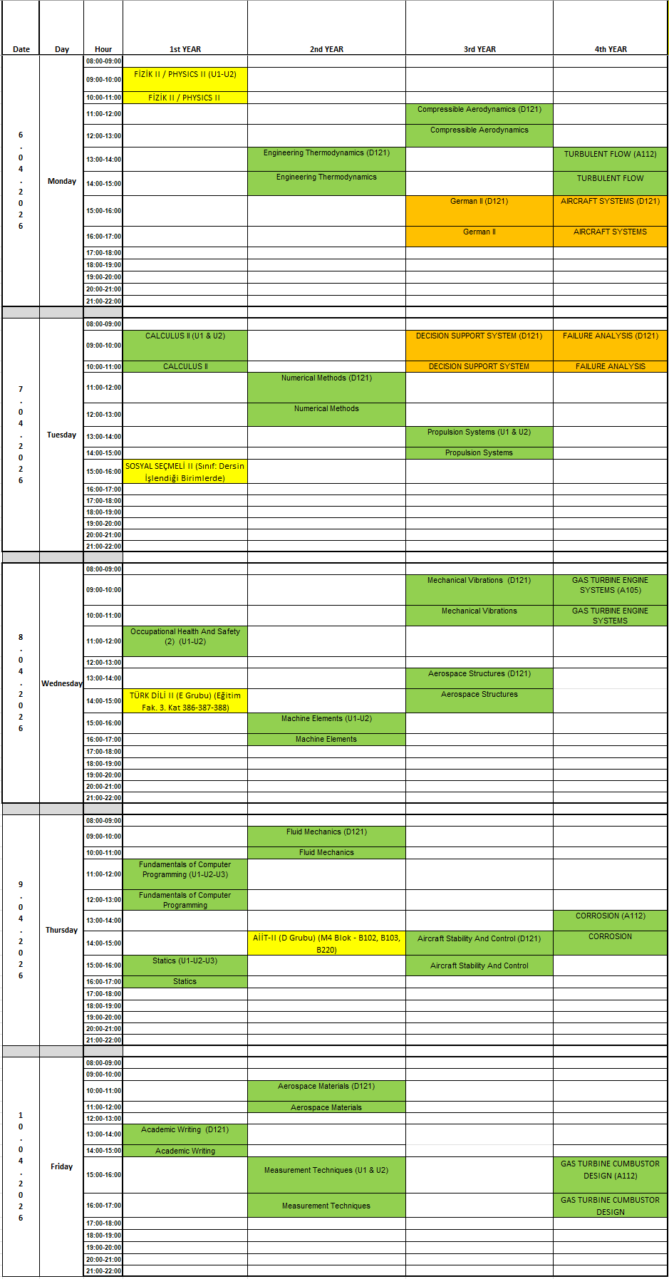 Turkish Language II Midterm & Final Exam Building and Classroom Information