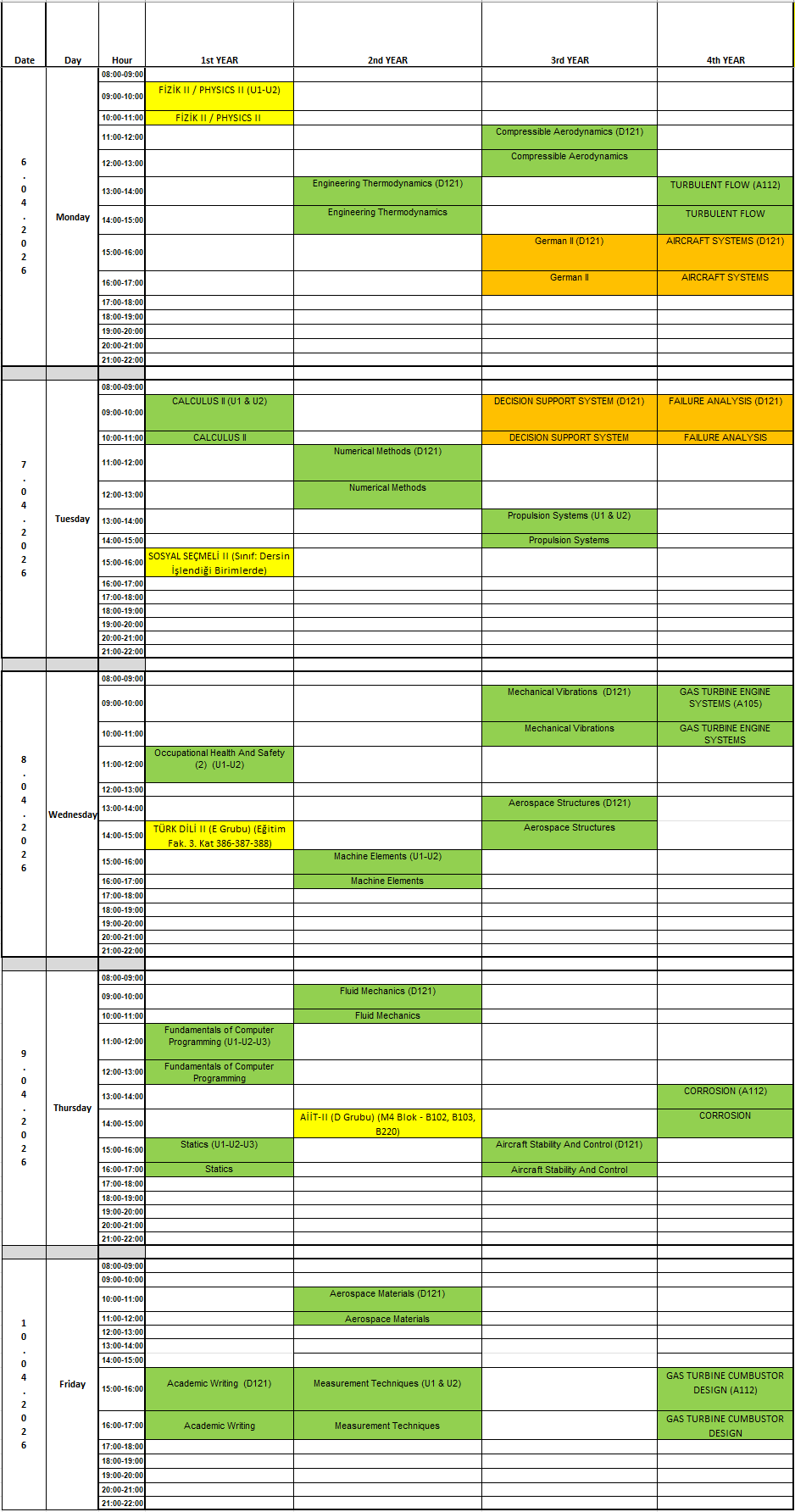 2025-2026 Spring Term Midterm Exam Schedule (Updated: 02.04.2026)