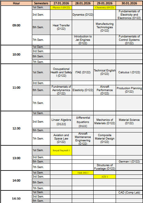 2025-2026 Güz Dönemi Bütünleme Sınav Programı (Güncelleme: 26.01.2026)